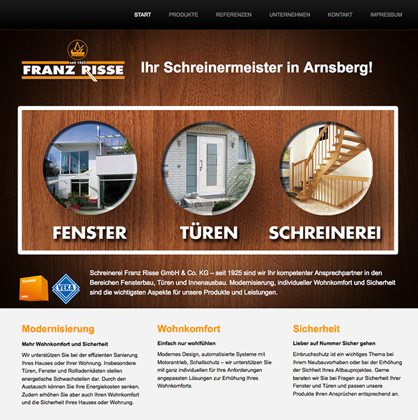 Die Schreinerei Risse in Arnsberg-Holzen ist ein Familienunternehmen mit Tradition. Um mit der Zeit zu gehen beschlossen wir 2009 etwas mehr Werbung für unser Unternehmen und unsere Leistungen zu machen.